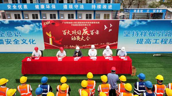 2021年3月29日上午,“百大项目庆百年”动员大会在集团公司承建的广州纳米生物安全中心总部园区一期项目现场隆重举行。建设单位广州纳米产业投资有限公司总经理李佩弦,广州珠江工程建设监理有限公司副总经理李晓光、分公司副总经理赵杰,广东省建筑设计研究院有限公司院副总工程师郭勇,九州体育-九州体育(中国)南方工程有限公司总经理、项目总指挥徐刚,项目书记招国樑以及各专业分包单位相关人员参加活动。